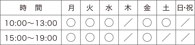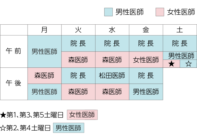 常時2名(土曜日は3名)の皮膚科医(男性医師、女性医師)による診療体制により、待ち時間の短縮だけでなく、各医師専門性をいかして幅広い領域に対応できるような体制となっております。